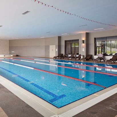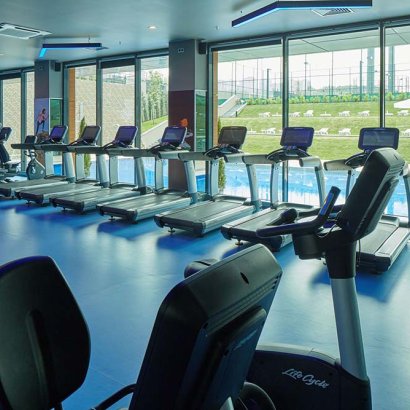 ve kapalı yüzme havuzu, tenis kortu, yürüyüş parkuru, sauna, basketbol sahası,